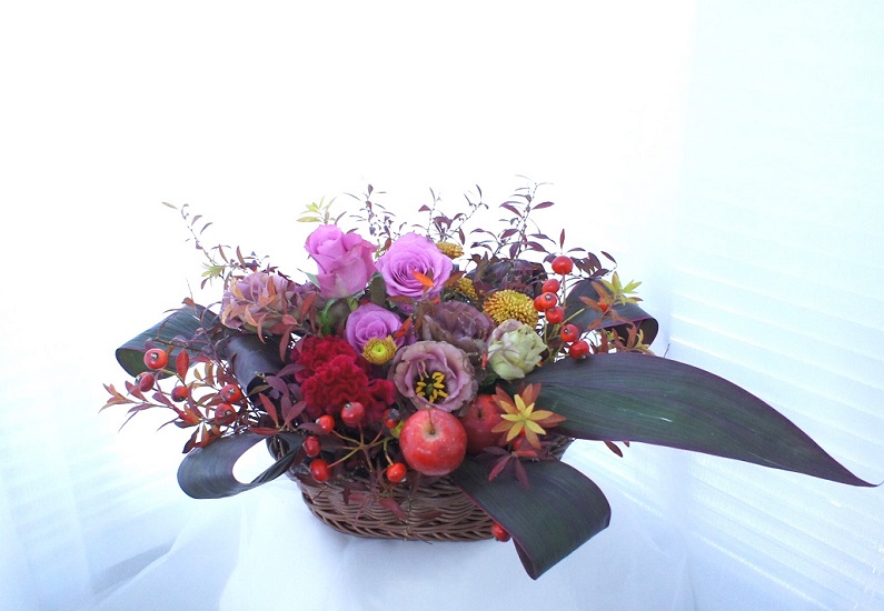 紅葉の葉とピンク×ブラウン×レッドで
