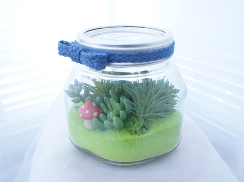 ガラス瓶にアーティフィシャルの多肉植物をアレンジ♪