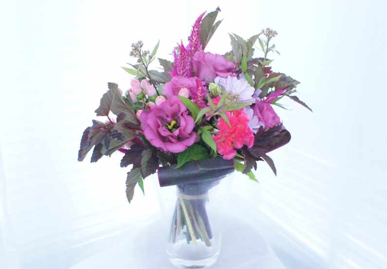 けいとうやフジバカマ、秋のお花を使って作りました。