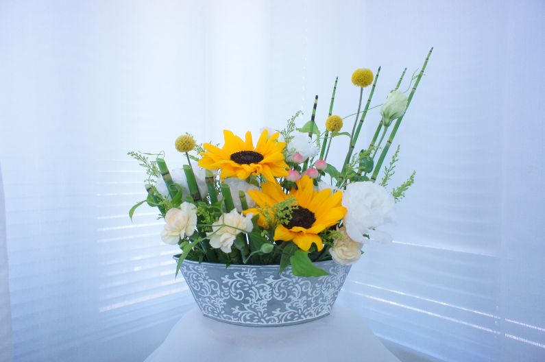 今日はサマーアレンジ(ひまわり編)のご紹介です。